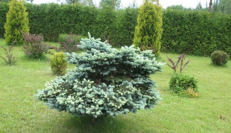 Ее пышная крона очень красиво смотрится в миксбордерах, особенно если периодически придавать ей нужную форму. Можно рядом посадить другие хвойные растения.