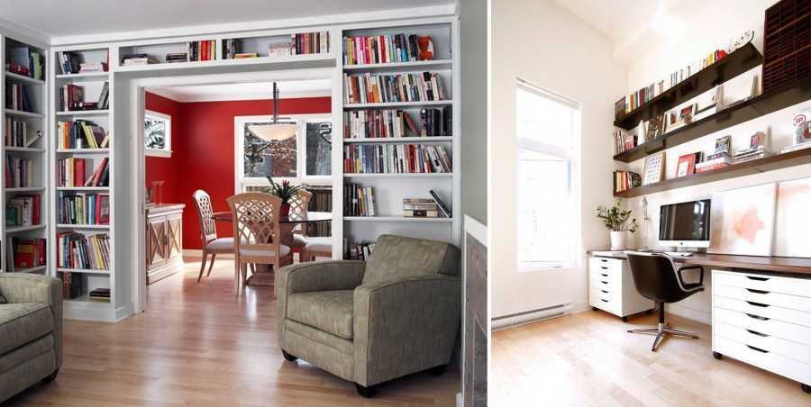 5. Полки в нишах. Если в квартире есть естественные ниши, их можно превратить в кладовки, встроенные шкафы или открытые стеллажи. Закрытые пространства для хранения вещей нужны всем, но если их хватает, то вариант со стеллажом стоит рассмотреть — так и квадратные сантиметры визуально не отрежутся, и помещение украсится. Для создания стеллажа в нише достаточно просто закрепить в ней несколько полок — боковые панели для стеллажа не нужны. Если есть возможность, желательно сделать подсветку полок, встроив светильники вверху ниши.
