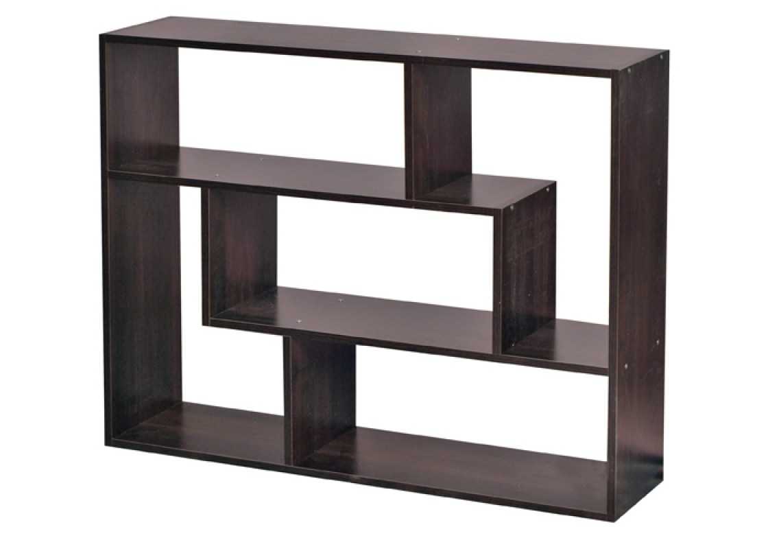Темная полка внушительных размеров: 900*900*300 мм. Весит 27,5 кг. Производится на отечественном предприятии. Материал изготовления – ПВХ, ЛДСП, МДФ. Состоит из корпуса, разделенного на пять частей. Подходит для современного интерьера. Туда можно поставить как книги, так и вазы, декоративные предметы. Модель гармонирует со шкафами из той же коллекции. Выдержит нагрузку в 20 кг.
