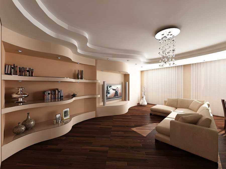 По сути, гостиную комнату можно назвать «лицом» квартиры: сюда приходят гости, здесь собирается вся семья, именно это помещение может рассказать о вкусах, интересах и предпочтениях хозяев, так что к его оформлению нужно подойти со всей ответственностью. Интерьер должен быть одновременно красивым и функциональным. Чаще всего полки располагают над диваном, в нишах или возле телевизора, давайте рассмотрим каждый вариант более подробно.