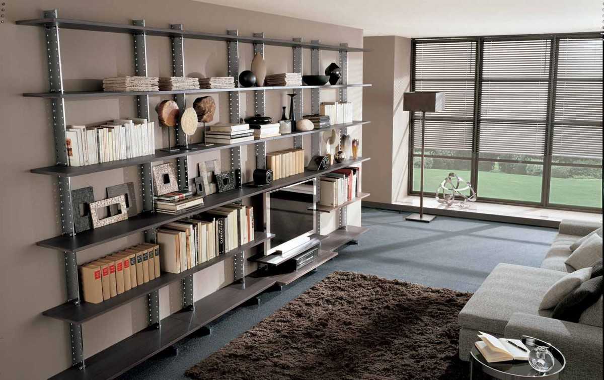 Поскольку гостиные гарнитуры и так называемые «стенки» постепенно сдают позиции, на их место приходят более легкие и простые решения. Стеллажи, открытые полки, ниши, полки, расположенные на углах или вокруг колонн – это прекрасное решение для любой гостиной. Лучше всего использовать пространство над диваном или на противоположной стене, но за неимением свободного места подойдут и любые углы и перегородки.