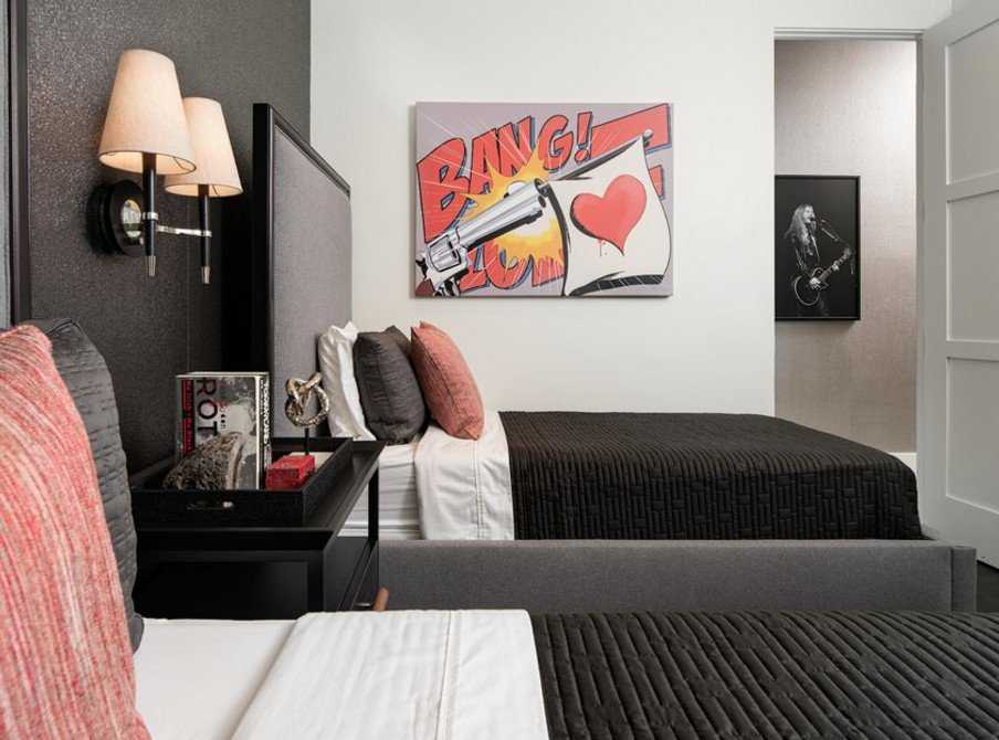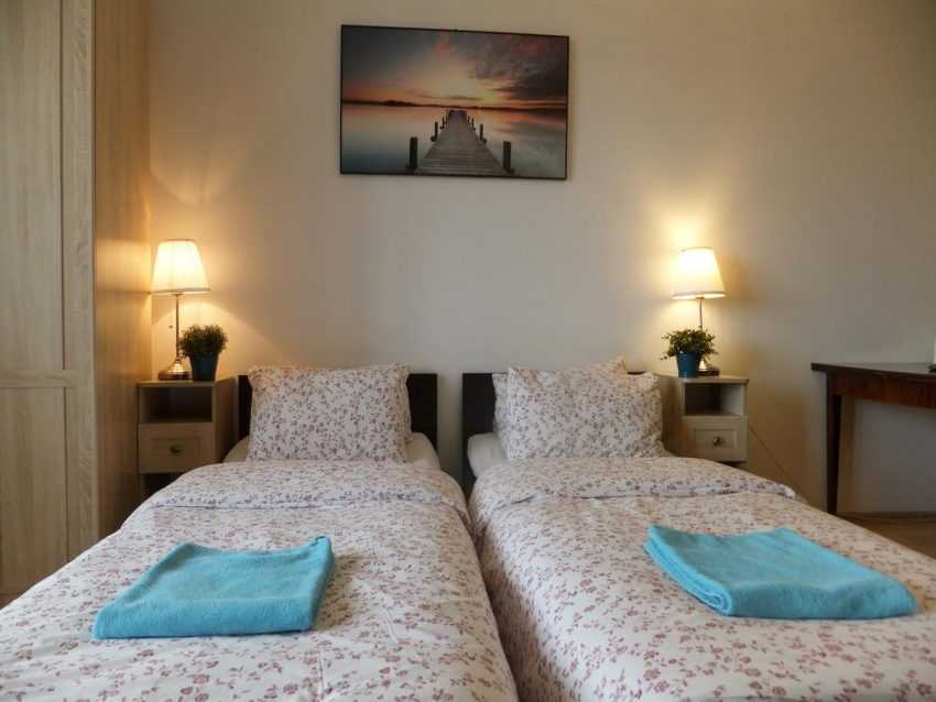 Для обеспечения большого количества свободного пространства кровати размещают вдоль стен, а не в центральной части комнаты.