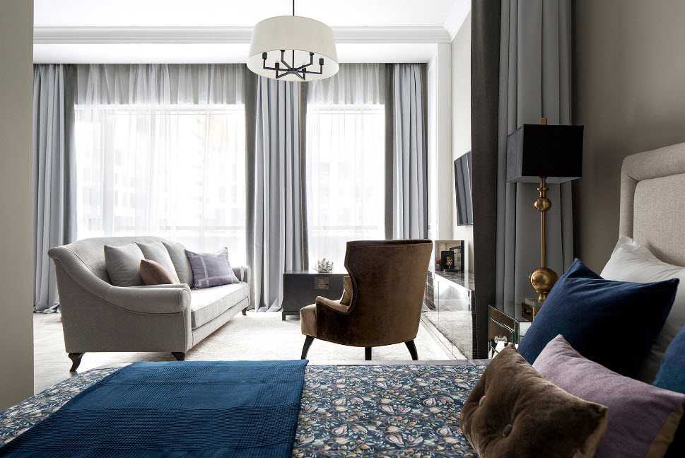 В зависимости от размера спальни происходит подбор мебели, которая будет там расположена. В небольшом помещении, скорее всего, получится разместить только кровать и небольшой комод, а в просторном помещении можно обустроить несколько функциональных зон.