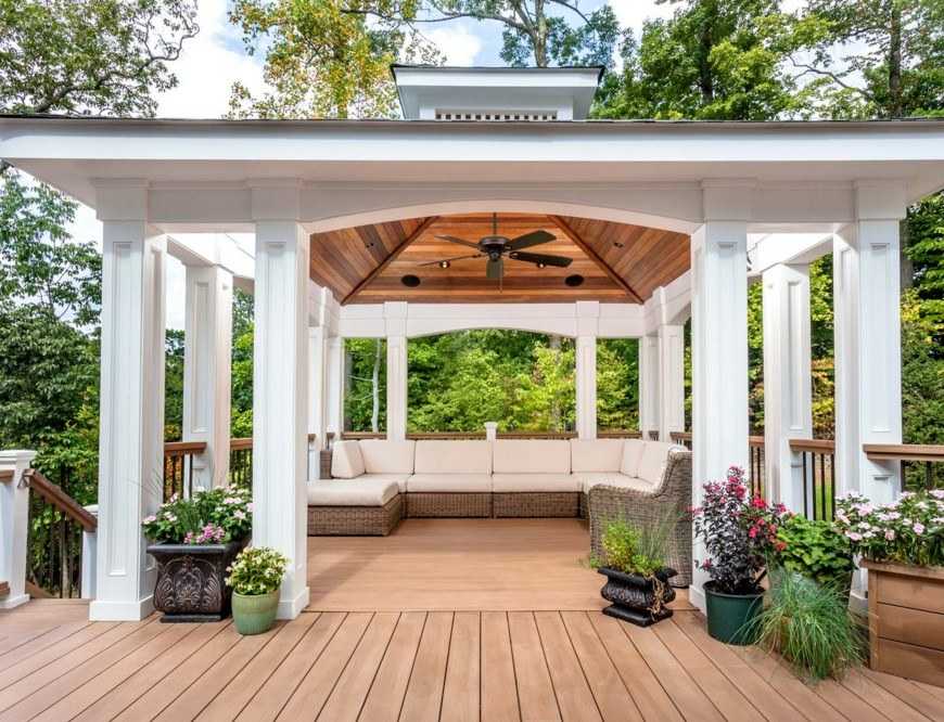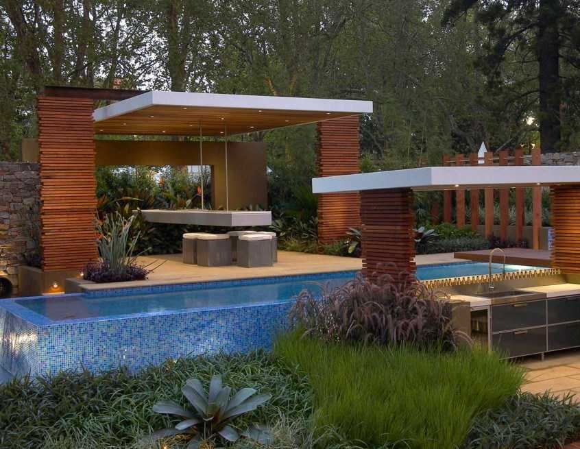 Перголы для вьющихся растений в виде беседки украшают любой двор, не требуют много пространства и могут служить местом отдыха, проводимого в одиночестве или с компанией. По архитектуре она должна хорошо сочетаться с окружением, чтобы ею было приятно пользоваться на открытом воздухе. Но с другой стороны, беседка ограждает от окружающей среды и создает интимную обстановку.