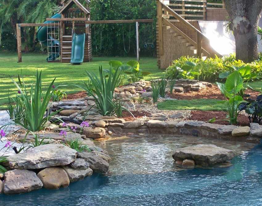 Для создания фундамента подходят утилизированные материалы, например, куски камня. Не обязательно планировать конструкцию недоступно дорогостоящей, а также такая реализация добавляет стилистические черты.