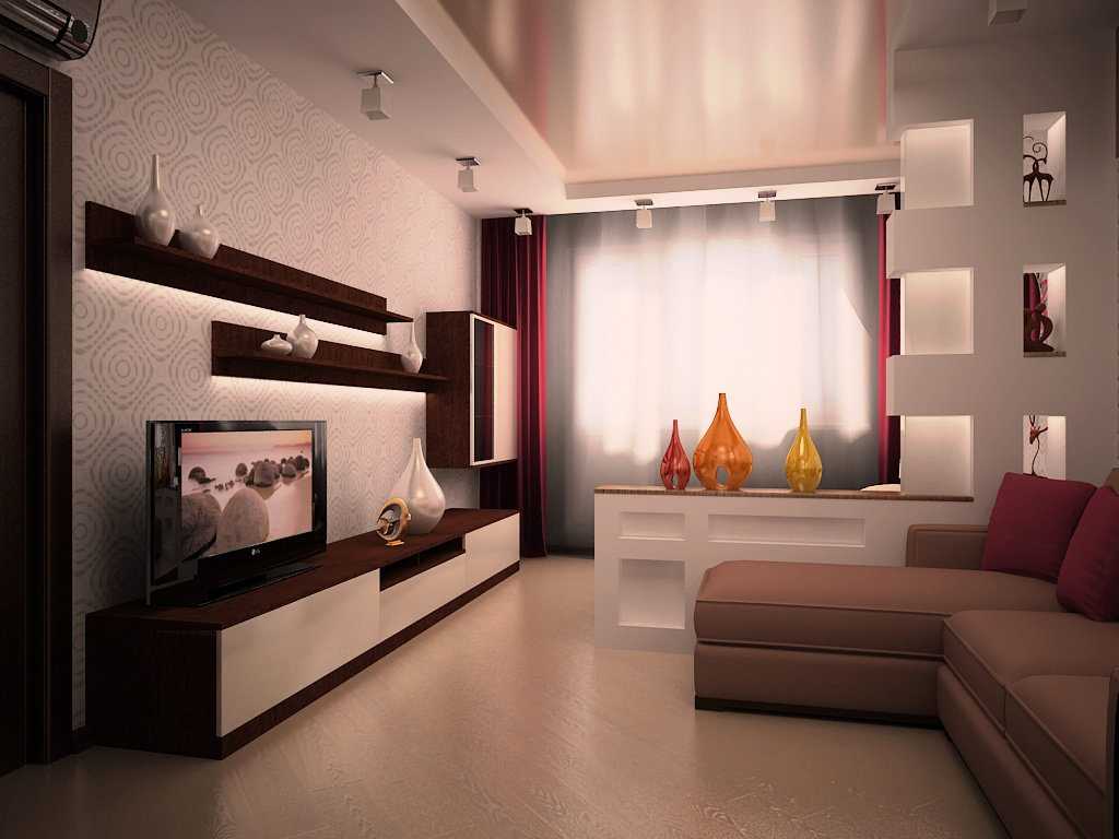 Чтобы немного расширить площадь гостиной комнаты маленького размера, можно сделать перепланировку.
