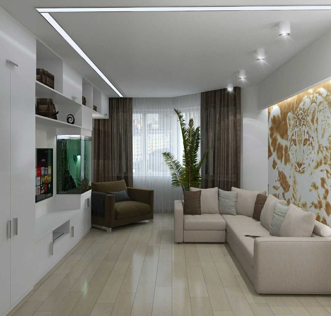 Зал в типовой квартире обычно небольшой площади, что мешать воплотить множество идей, например, не получится установить камин. Но даже в панельном доме можно создать функциональный и интересный дизайн гостиной комнаты, в котором будет уютно и удобно.