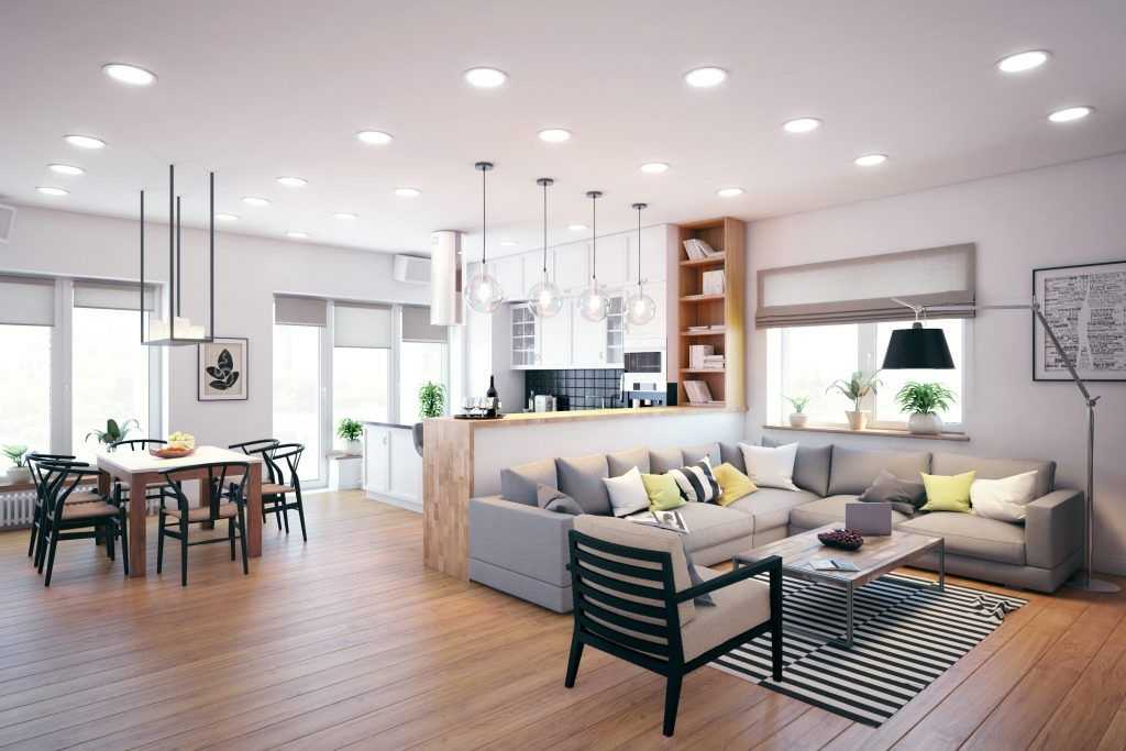 При выборе цвета для кухни, совмещенной с гостиной, стоит принять во внимание: