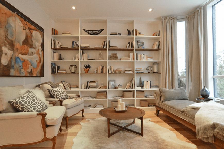 В гостиной есть мебель, которую нельзя игнорировать. В конце концов, это место, где у вас обычно самые большие возможности для создания красивого декора. Ни одна другая комната не может лучше демонстрировать гостям аксессуары и украшения. Гостиная также является отличным местом для демонстрации того, чем вы гордитесь. Так что, если являетесь владельцем целой серии своих любимых книг или можете похвастаться большой коллекцией DVD-фильмов, нет смысла прятать их от мира глубоко в шкафах, а стоит поставить на всеобщее обозрение. Полки — это место, которое отлично подходит для этой цели.