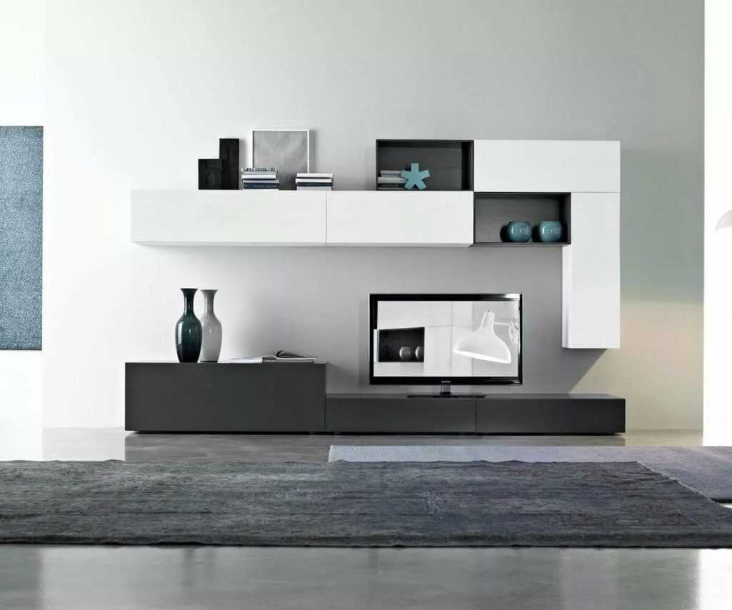 Полки в гостиной под телевизором можно занять массой полезных вещей. На представленных фото есть интересные примеры с техникой, с книгами, вазами и другими декоративными элементами.