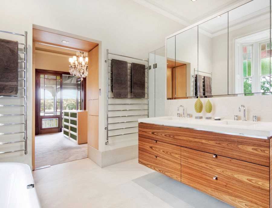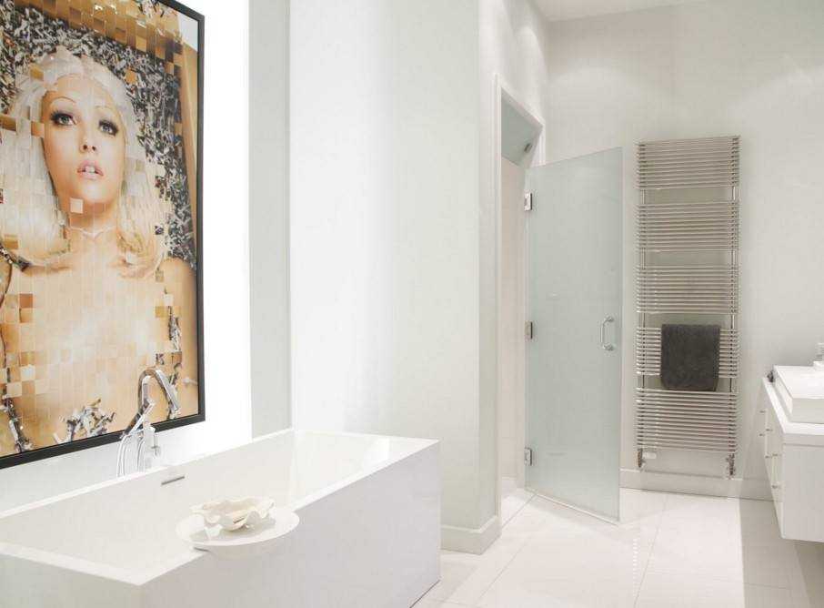 Современная ванная с полотенцесушителями каркасного типа