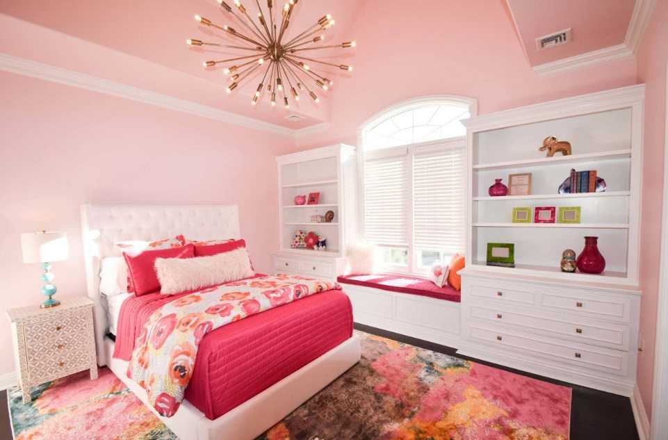 Розовый цвет обладает очень большой палитрой оттенков и многие из них весьма неплохо сочетаются в интерьере. Главное использовать не более двух оттенков розового и, при этом, разбавить интерьер некоторыми деталями более спокойных, сдержанных и нейтральных цветов.