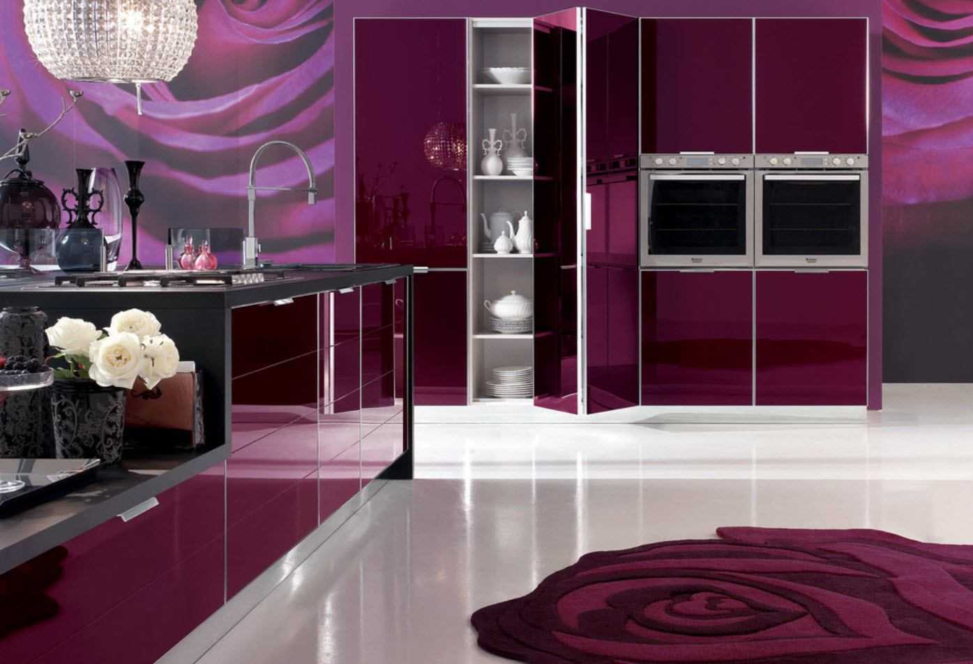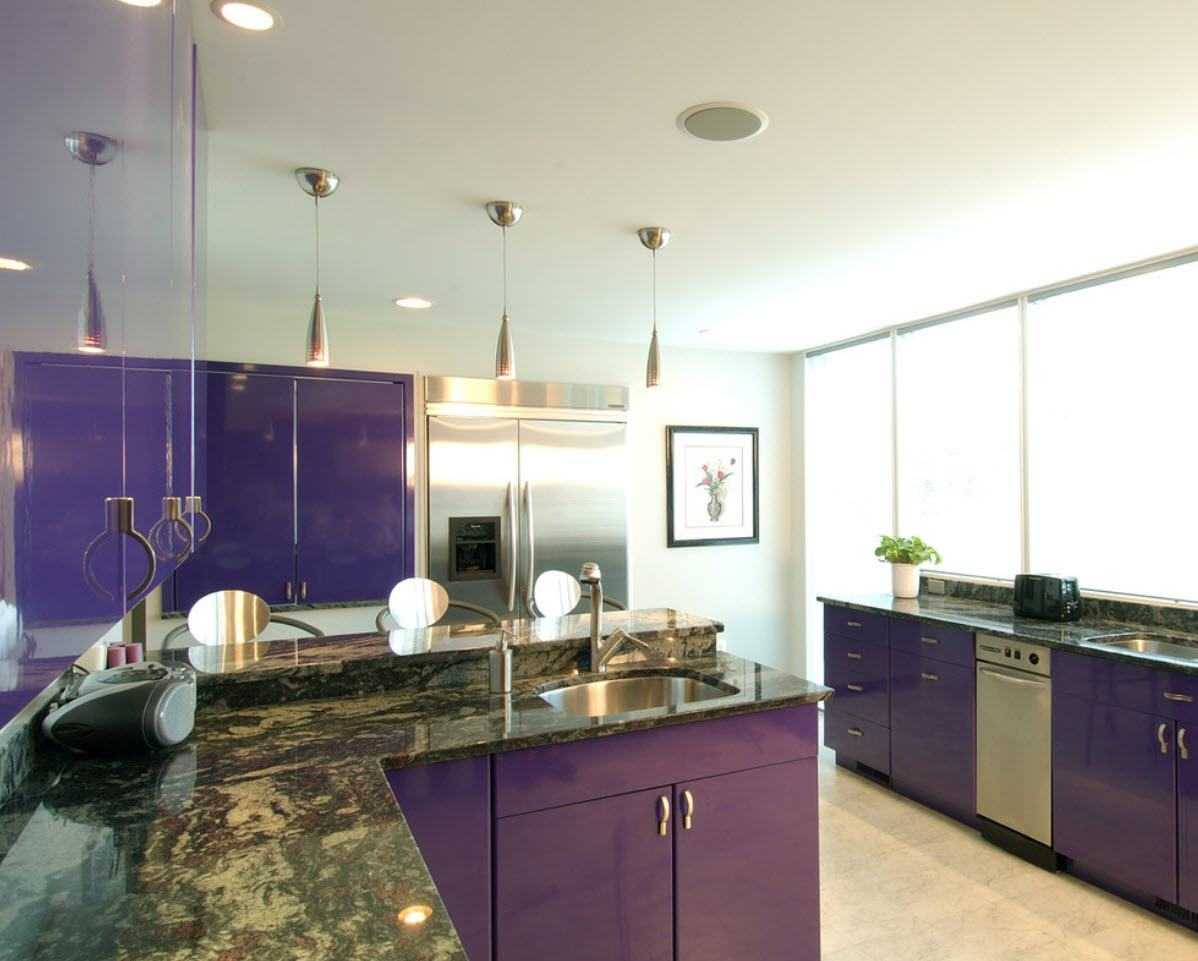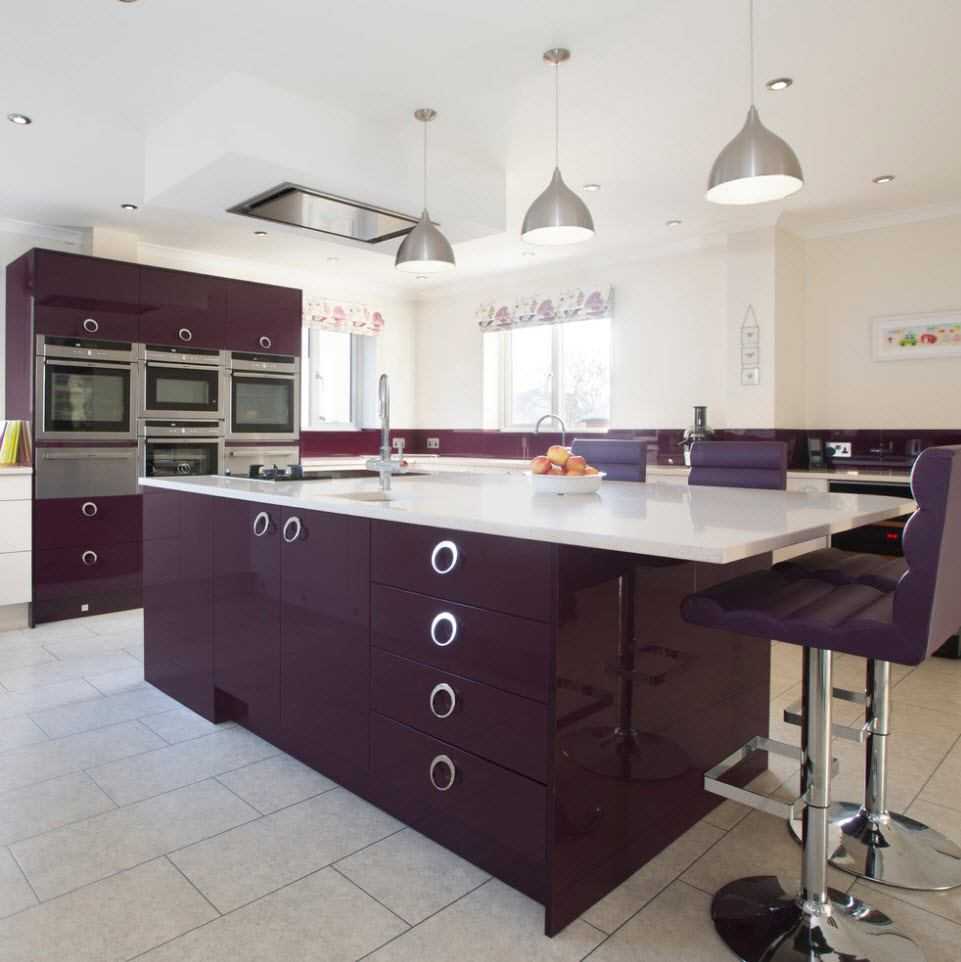 Дизайн кухни фиолетового цвета