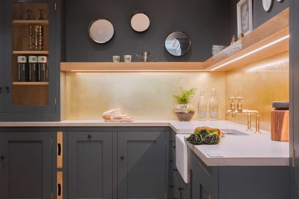 Это уже как минимум 3 сценария освещения, благодаря которым даже монохромная кухня в серых тонах скучной не будет.