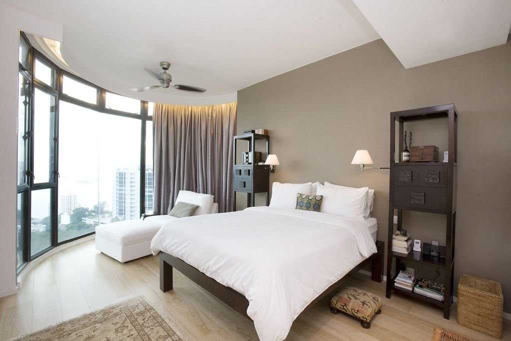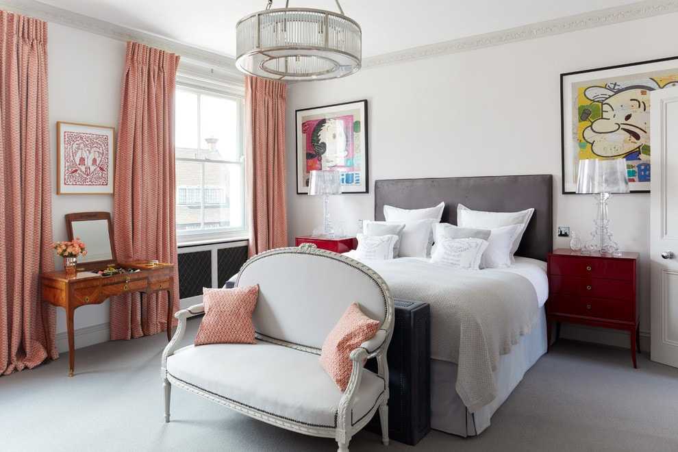 - В просторных спальнях желательно использовать яркие, глубокие цвета на шторах, обивке, обоях.