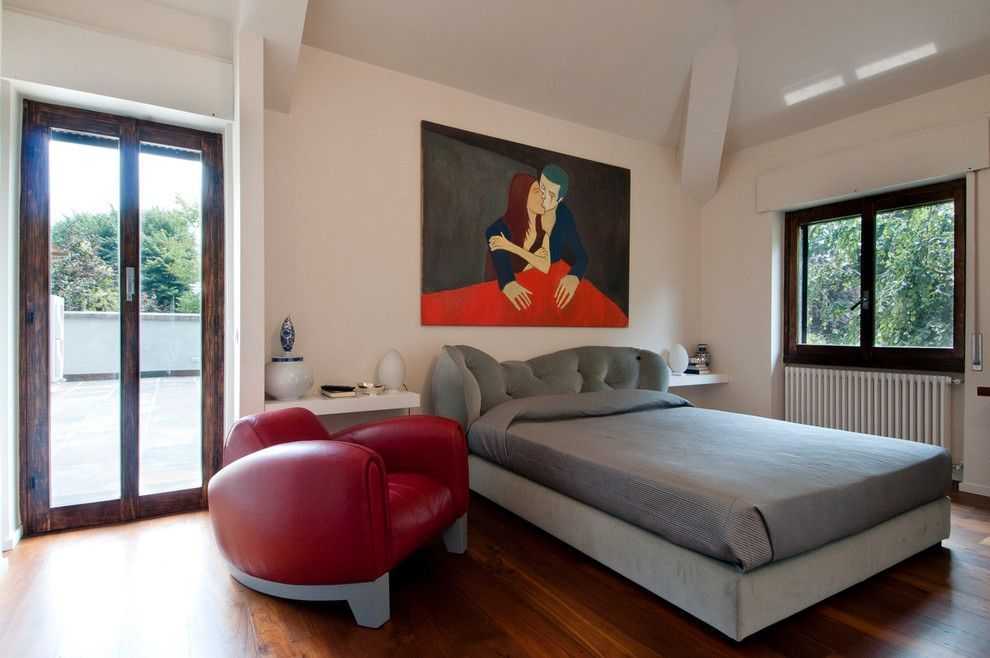 Небесные тона придадут спальне объём, жёлтые и оранжевые – визуально сузят пространство. Зелёный, серый, красный – эти цвета абсолютно никак не влияют на то, как будет восприниматься помещение. Поэтому их можно применять без опаски.