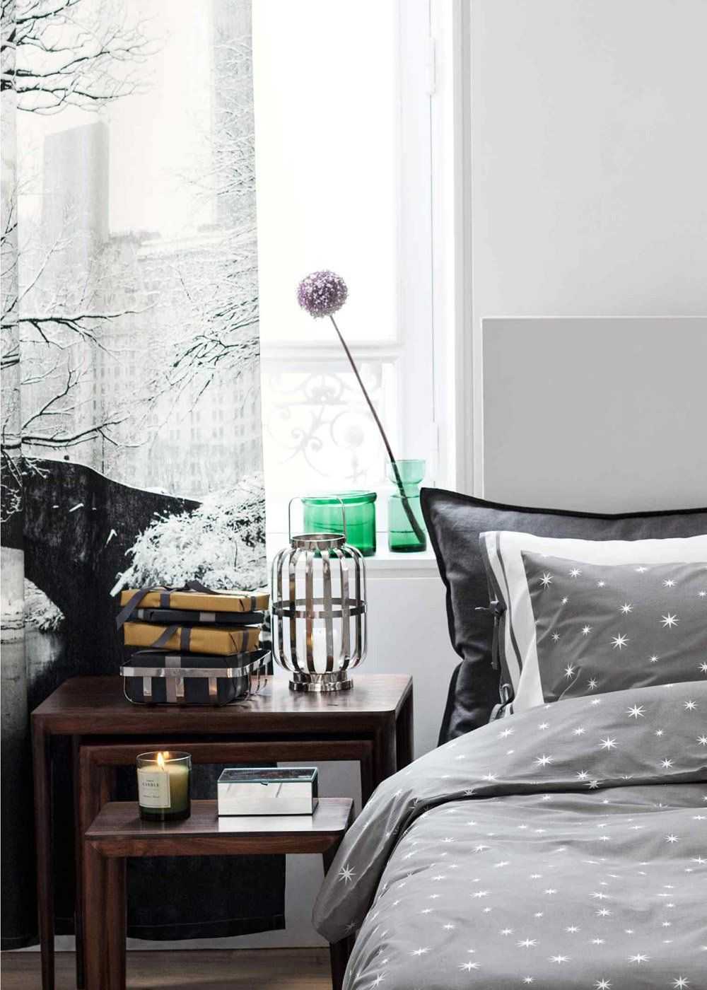 Полностью выполненный из хлопка бело-черный занавес похож на картину. Иллюстрируя зимний пейзаж в природе, штора приглашает любоваться изображением каждого сторонника скандинавского стиля.