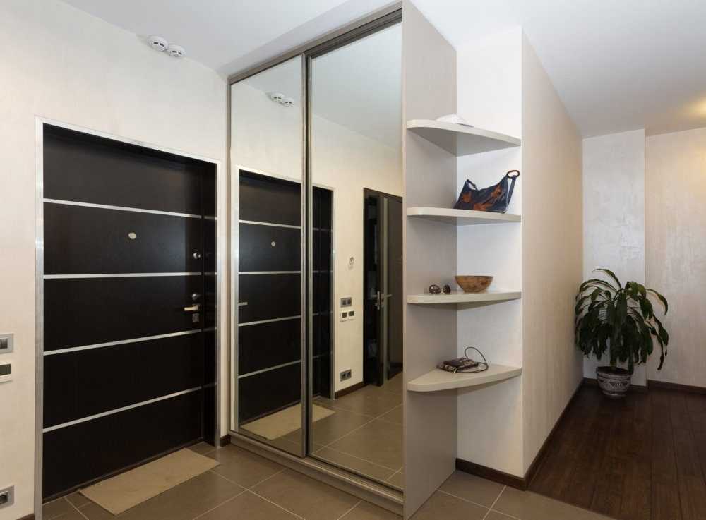 Интересный выбор — встроенный шкаф в нишу. Этот вариант возможен в том случае, если в вашей прихожей есть ниша. Благодаря такой планировке шкаф будет находиться в определенном углублении. Это позволит максимально рационально использовать пространство.