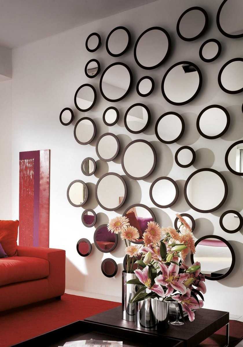 Благодаря своей отражающей способности такие элементы декора преломляют свет, создавая мягкие блики. Придают особый уют и атмосферность. Простая композиция из зеркал разного размера хорошо дополнит стиль минимализм или хай-тек, зато зеркало в кованой или резной деревянной раме станет желанным гостем даже в классическом интерьере.