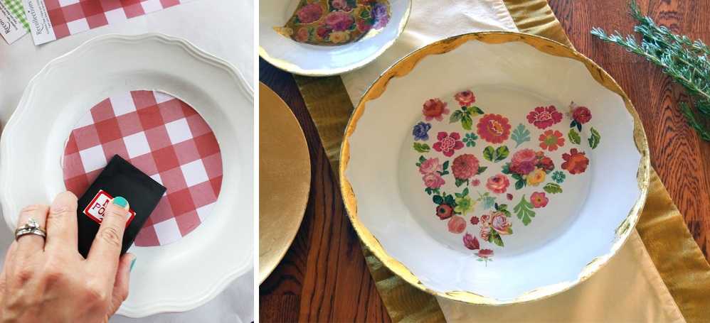 Интересно, что если вы оформите таким образом тарелку в форме сердечка, то она превратится в весьма необычную и красивую валентинку. Такая оригинальная поделка превосходно впишется в дизайн кухни любимого человека, ежедневно напоминая ему о вас.