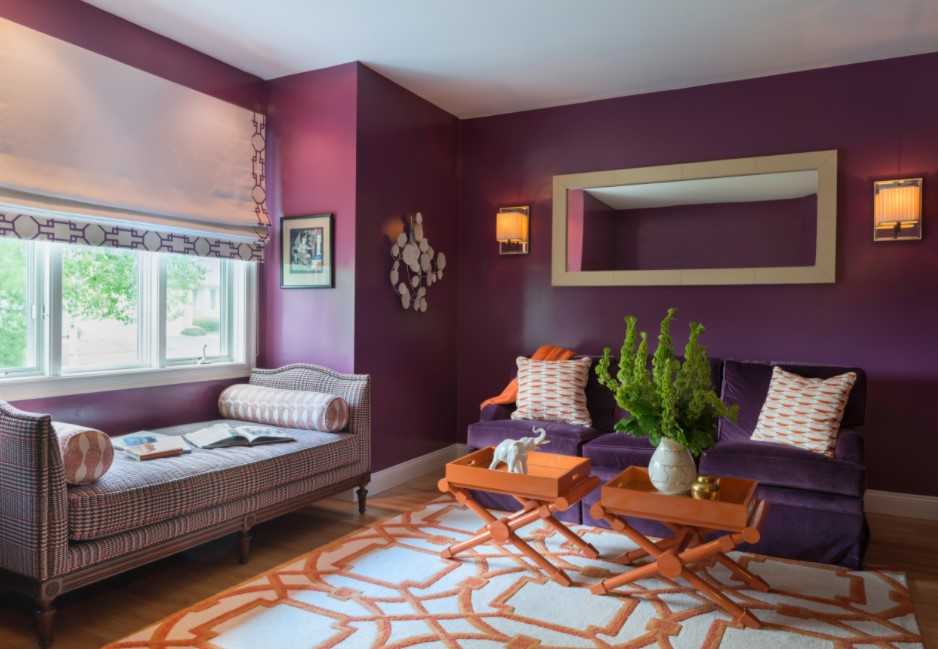 Стены в ярком цвете — одна из самых модных тенденций этого сезона. Если вы хотите попробовать его в своем собственном доме, вы можете с уверенностью достать фиолетовую краску или обои. Темные, насыщенные оттенки (спелая слива, баклажаны) превратят гостиную или спальню в тихое убежище. Яркие фиолетовые оттенки привносят в интерьер весеннюю свежесть и бодрое настроение. В зависимости от ваших потребностей, вы можете покрасить одну фиолетовую стену, выбранную часть комнаты или всю комнату.