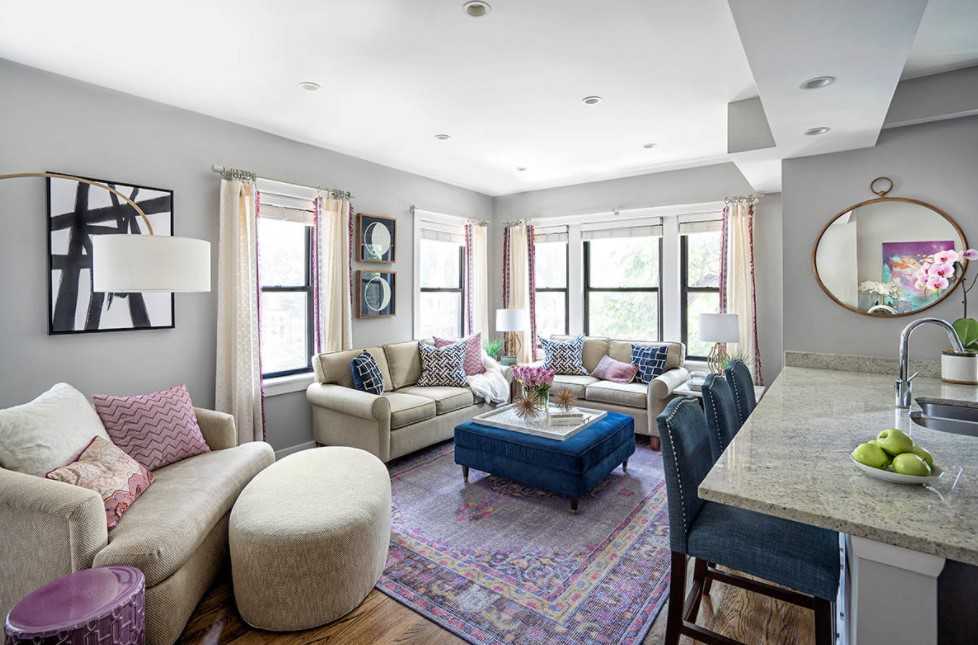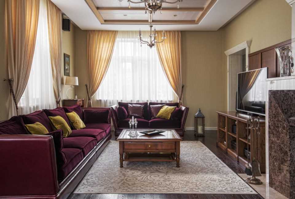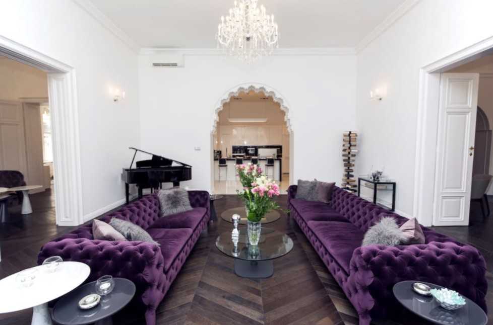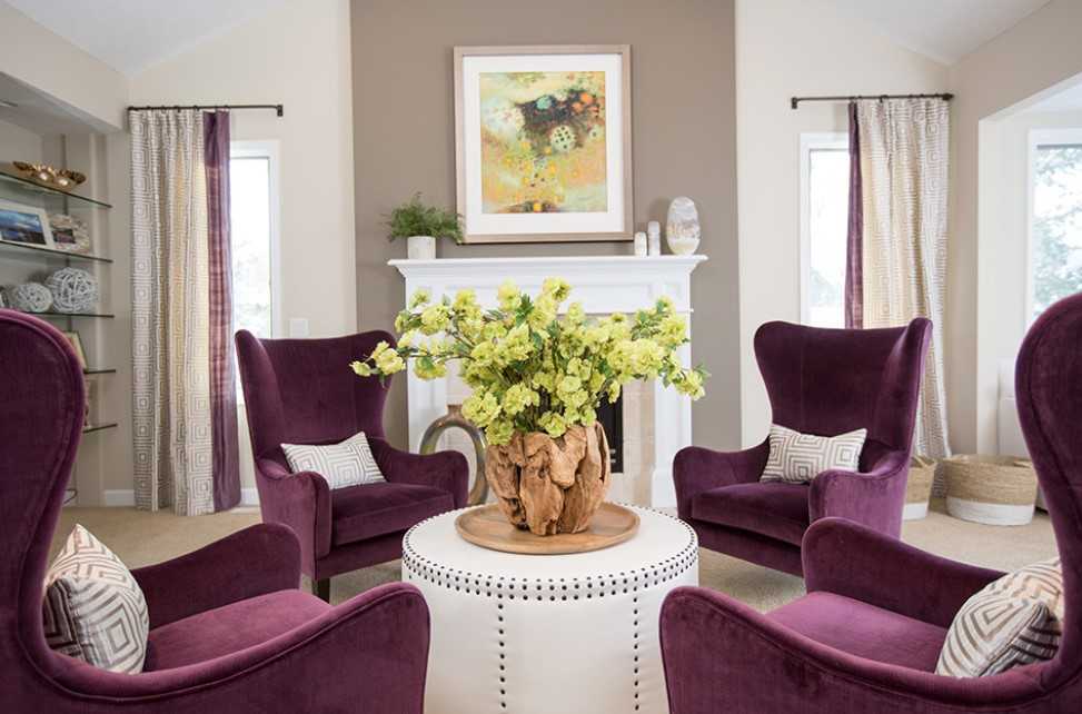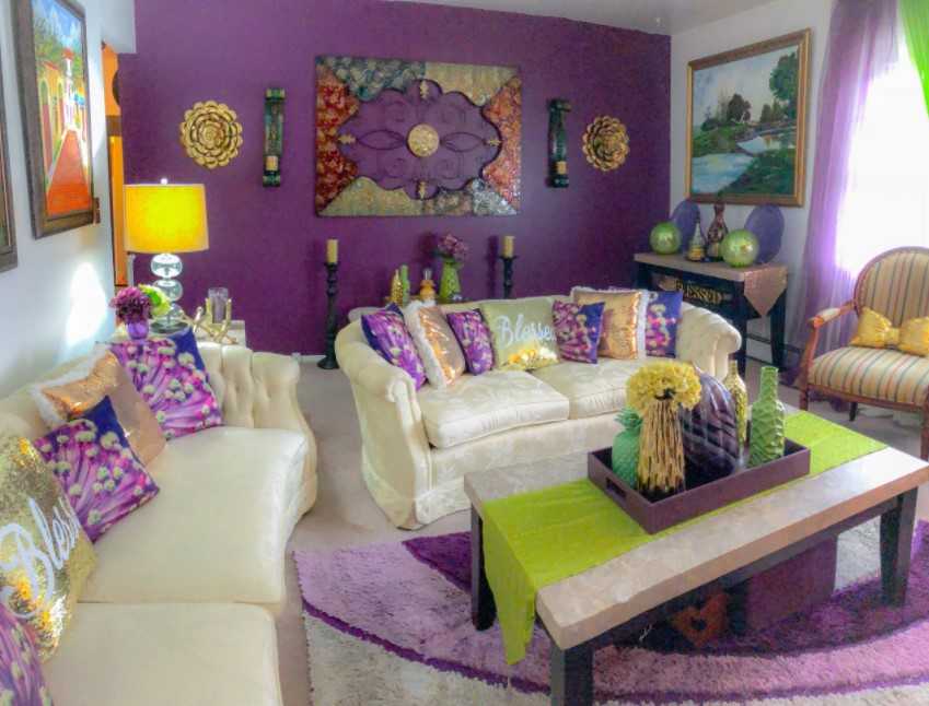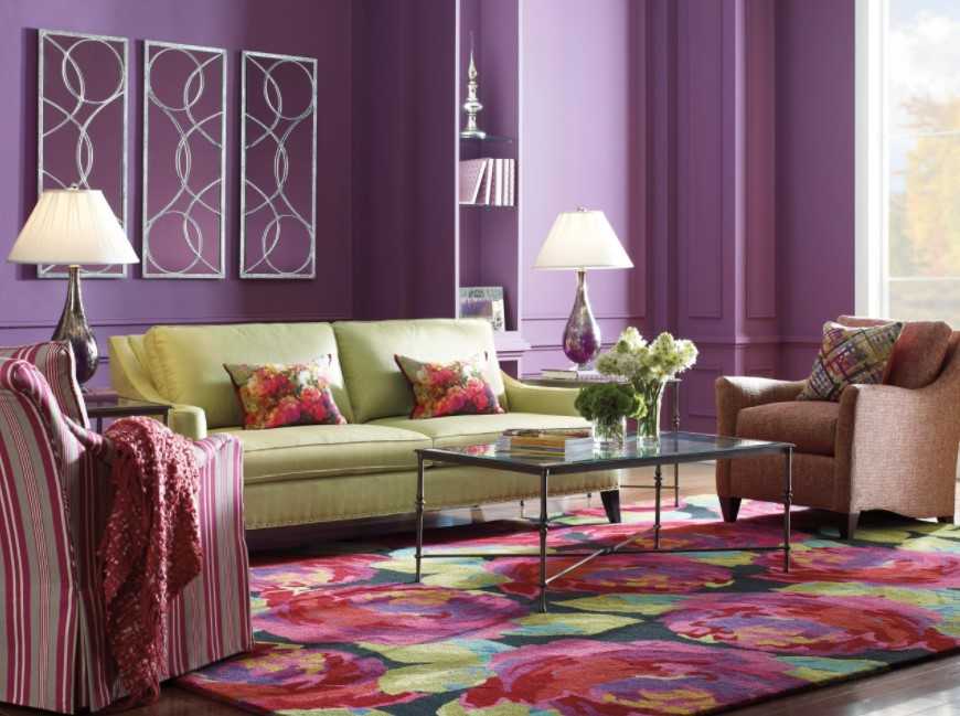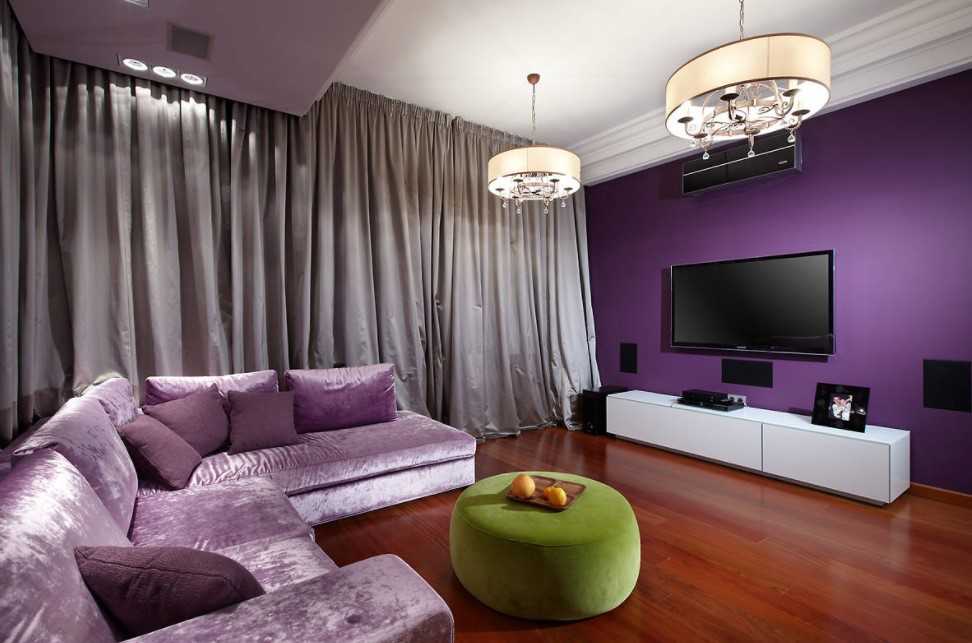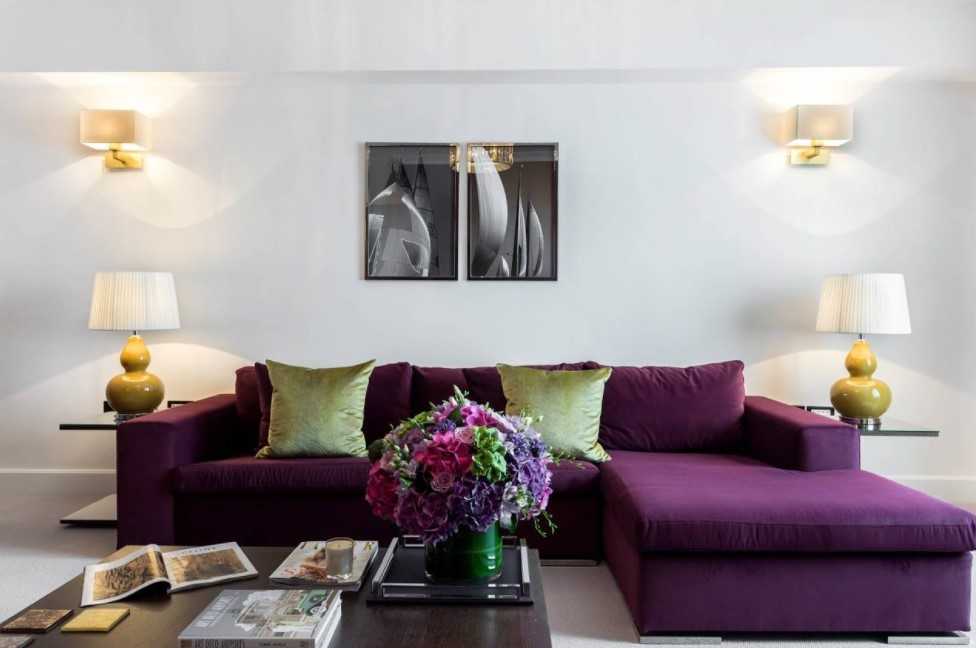 Гармоничные комбинации: в какую гостиную поставить фиолетовый диван