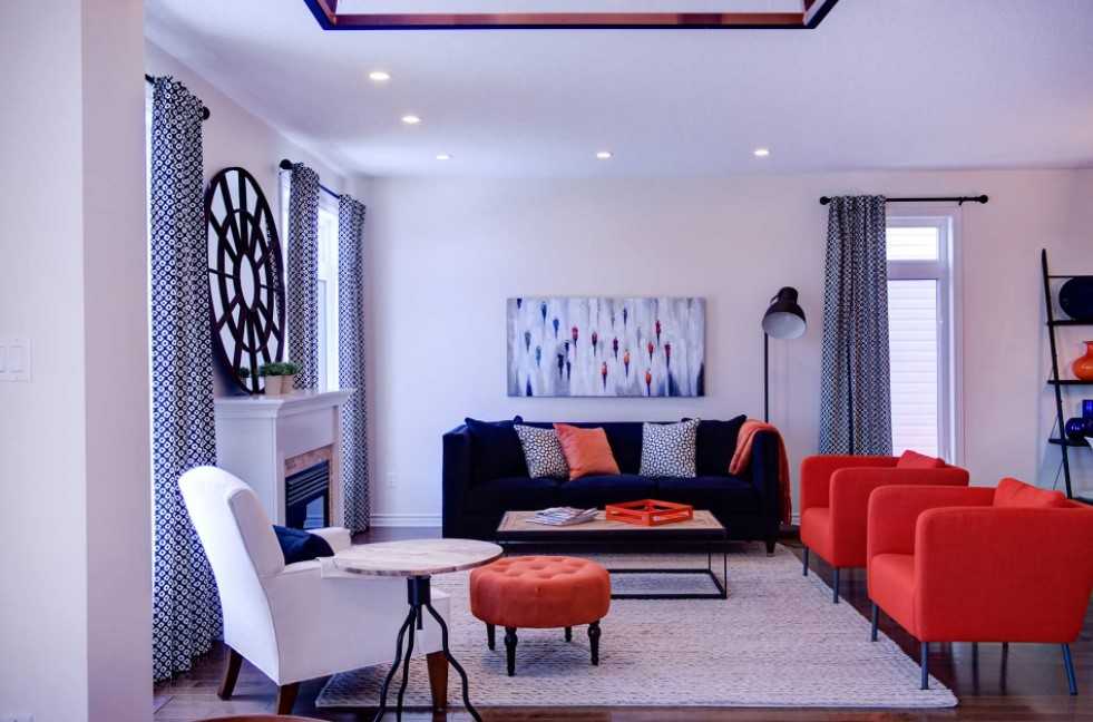 Оба цвета – яркие, энергичные, благодаря этому при их комбинировании необходимо ощущать меру: сгладят сильный контраст дополнительные интерьерные предметы – подушки, панно, прочая мебель. В качестве дополнительных подбирают светло-зеленые, песочные, бирюзовые цвета.
