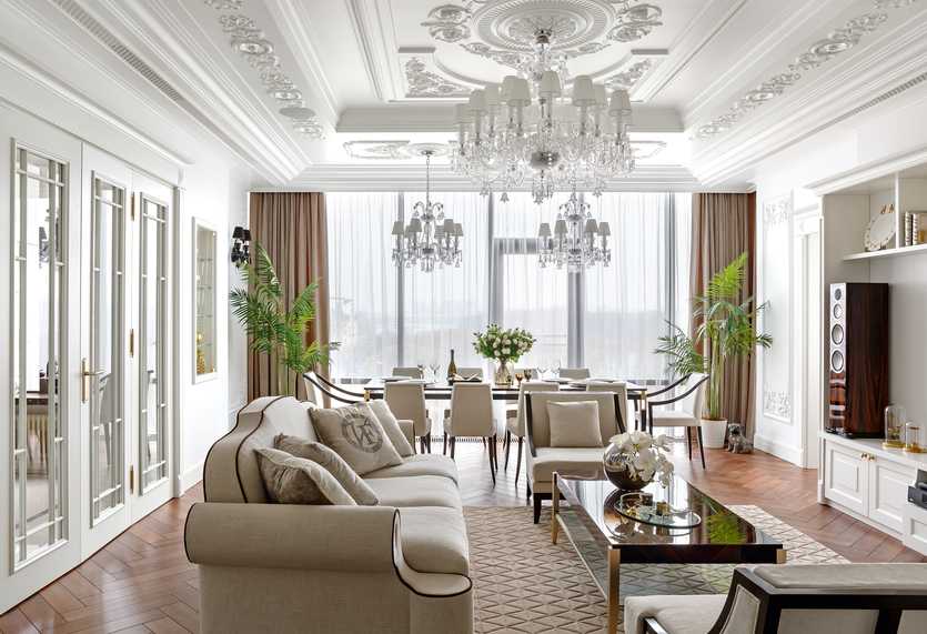 В любом из классических стилей, будь то: барокко, ампир, романтизм – светлые двери в интерьере всегда желанный элемент. Они отлично подчеркнут и элегантность классицизма, и помпезность дворцовых направлений.