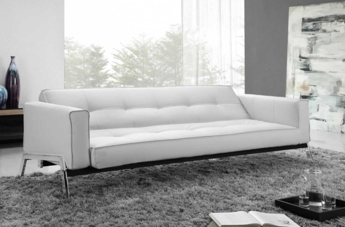 Главное место в гостиной минималистского стиля отводится дивану-трансформер белого цвета прямоугольной формы, с плоскими, гладкими фасадами, без резьбы и другого декора. Особенностями стиля является атмосфера свободного пространства и отсутствие лишних декоративных деталей. Уместно использовать встроенные шкафы, выступы с полочками, ниши, которые как бы вырастают из стены, то есть невидимость многих элементов интерьера за особыми конструкциями. Диванные подушки должны сочетаться со стенами и мебелью, но контрастировать с деревянным полом. Белый диван в интерьере гостиной выглядит дорого и благородно на фоне стен, покрытых рельефной штукатуркой или жидкими обоями. Не допустимы покрывала, скатерти, декоративные салфетки. Разнообразить палитру помещения можно приглушенными естественными тонами дерева, металла, натурального камня.