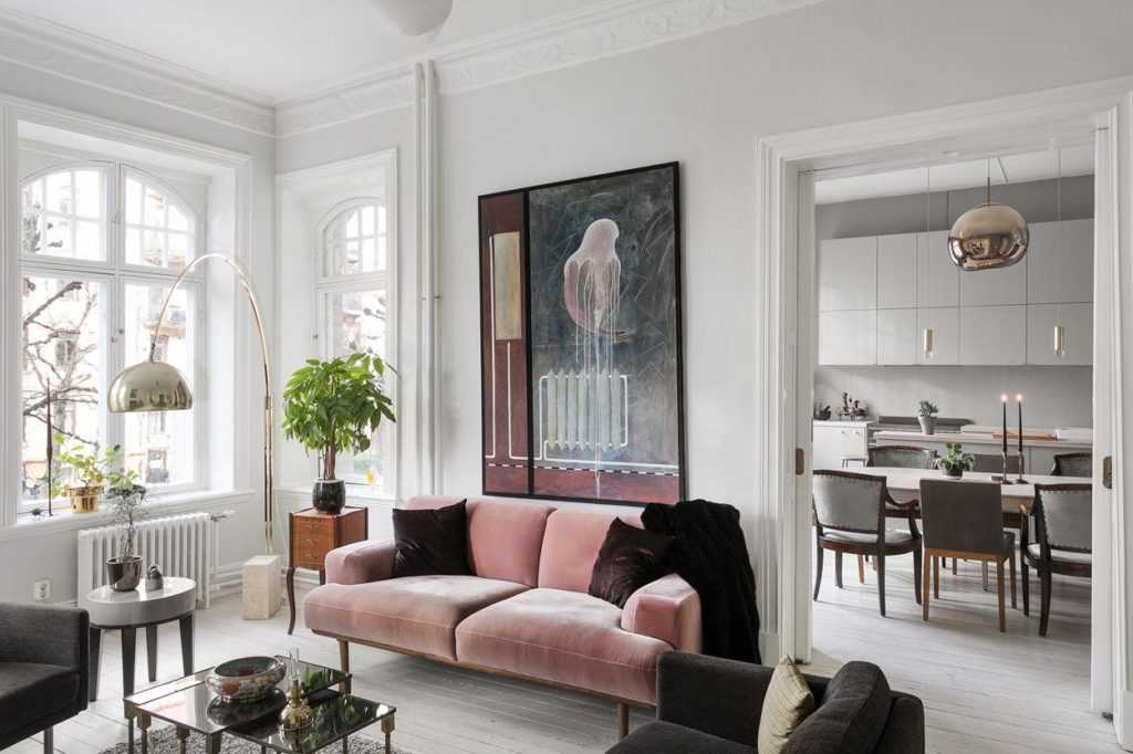 Как и патинированная мебель, диваны с изогнутыми формами — изысканные предметы, которые придают комнате роскошный, изысканный воздух. Этот дизайн подходит для бархатной обивки, цвета становятся яркими, с яркими акцентами. В дополнение к особому внешнему виду, такой диван для гостиной также превосходен в плане комфорта. Розовый диван подчеркнет мягкий и приятный на ощупь материал, будет баловать вас, а несколько декоративных подушек с различными текстурами завершит всю картину.