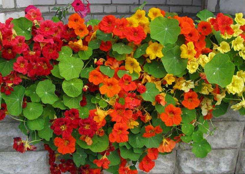 - Настурция. Ее стебли могут достигать трех метров! Подходит для украшения стен балкона и посадки в подвесных кашпо.