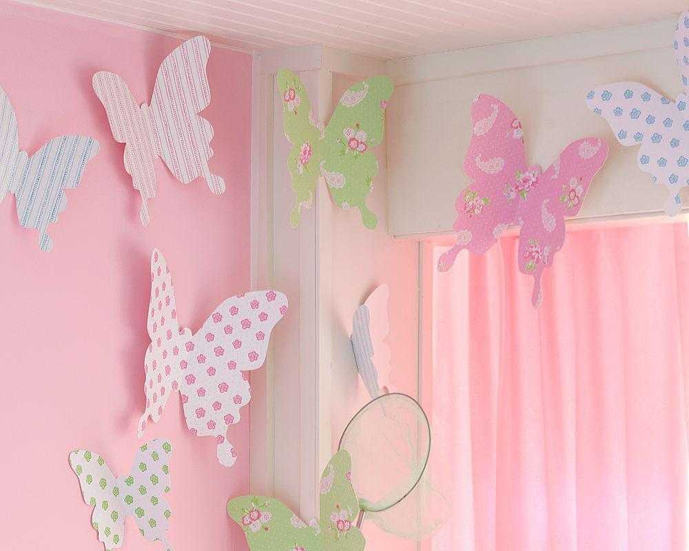 Для декора стен не обязательно покупать уже готовые бабочки. Их можно создать своими руками, подключив фантазию, и взяв все нужные материалы. Фигурки для украшения стен можно сделать из любых материалов, например, из гофрированной или обычной бумаги.