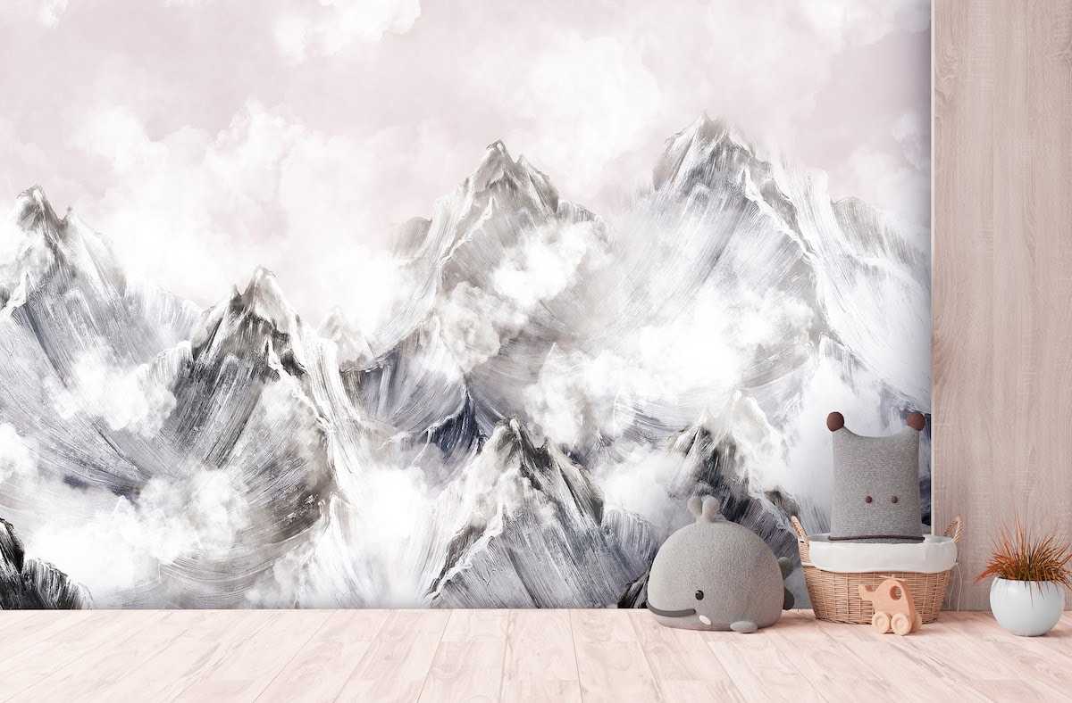 Обои с изображением гор являются довольно модным и популярным решением при оформлении стен в гостиной