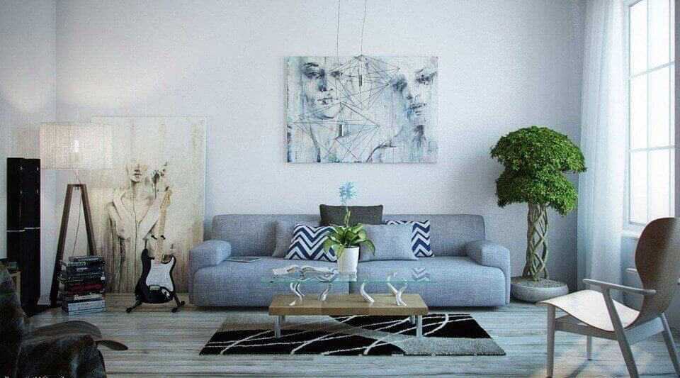 Скандинавский стиль. Спокойный и где-то немного холодный стиль норвежских ледяных полей и туманных фьордов поможет сделать стильной любую гостиную, независимо от ее размеров. Белоснежные тона, разбавленные ультрамариновыми красками, настроят на деловой лад, а пушистые пледы, покрывала, уютный ковер внесут необходимую теплоту при общении с близкими людьми. Дополнительное тепло (в прямом и переносном смысле) подарит камин.