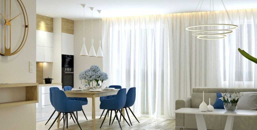 Классика – сочетание белого и насыщенного синего. Такой дуэт придает помещению роскошности, легкости, свежести. Неординарным личностям подойдет союз синего с солнечным желтым, который задает позитивное настроение. Комбинация с красным возможна, но смотрится экстравагантно.