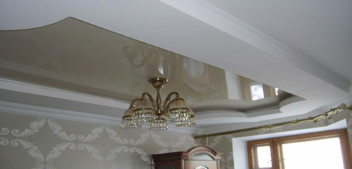 Учитывая зеркальную способность потолка, нужно заранее о возможности отражения в нем некрасивой «начинки» плафонов и прочих элементов.