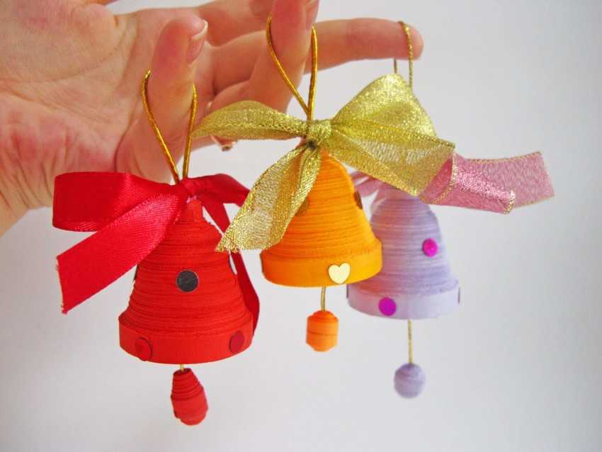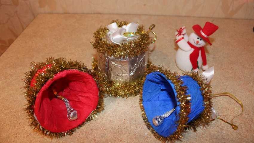 - А для еще одного варианта натяните несколько колокольчиков на блестящую синельную проволоку и зигзагообразно протянули их по елке, как гирлянду.