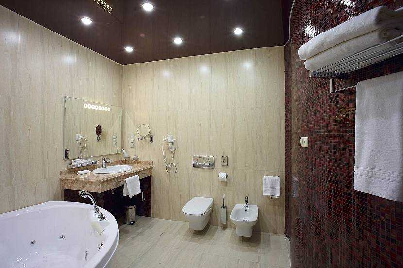 Ванная. Для влажного помещения выбирают безопасные в эксплуатации водонепроницаемые модели.