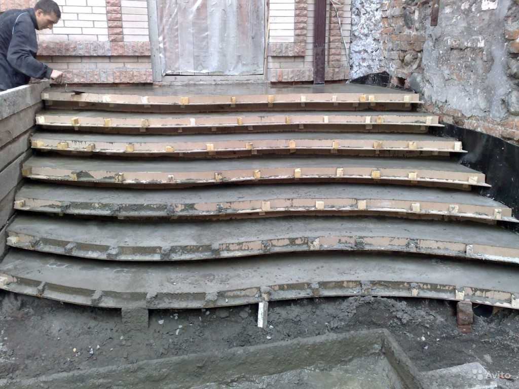 Бывают монолитные бетонные лестницы. Это цельная конструкция вместе со ступенями в количестве от трех до восемнадцати штук. Широко используют такие лестницы при строительстве многоэтажных объектов, будь то жилое или производственное помещение. Для входа в здание или спуск в подвал надежнее всего сконструировать ступеньки именно из бетона.