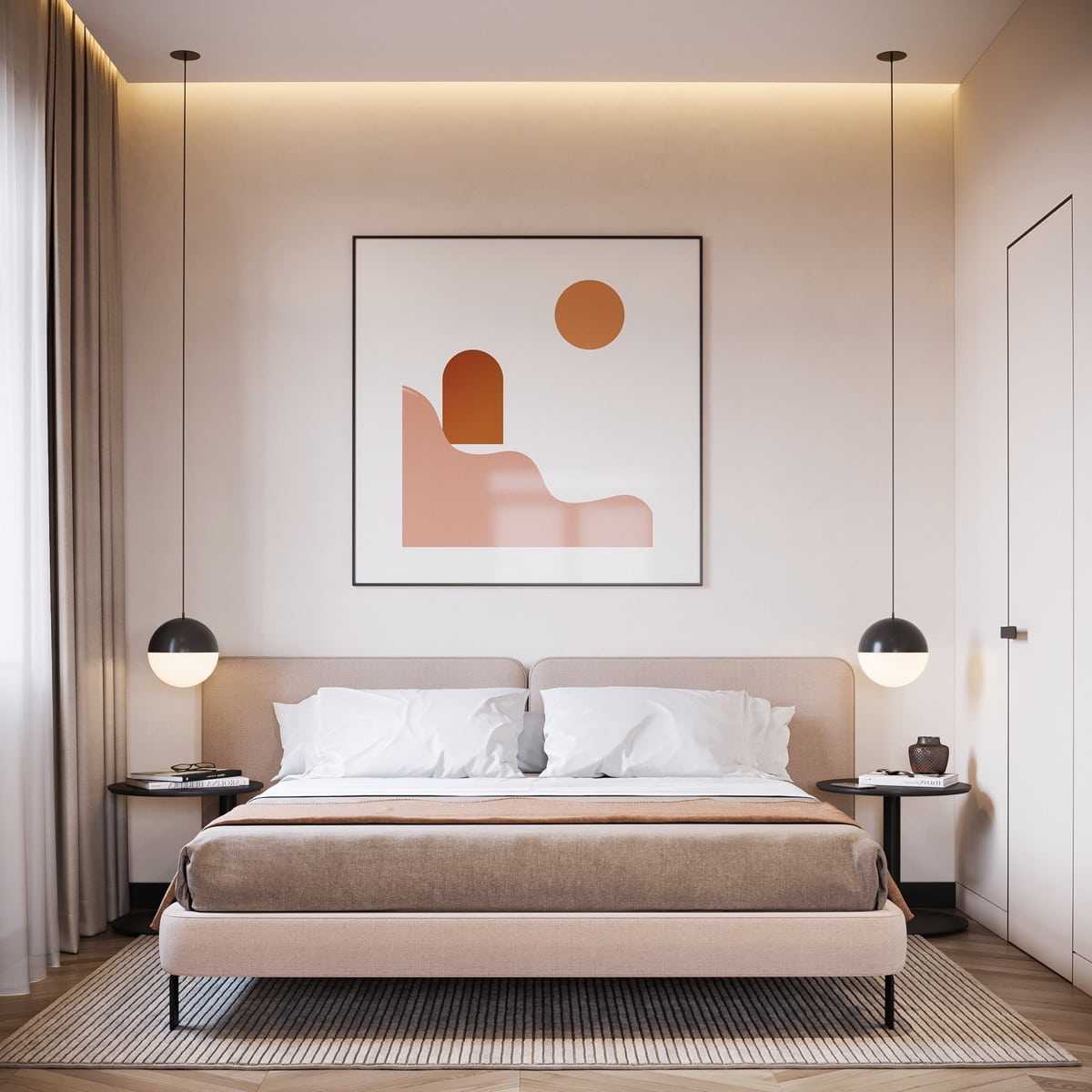 Спальня — очень важная комната в доме. Это место мира, спокойствия и восстановления после долгого, часто напряженного рабочего дня. Когда вы входите в спальню, должны чувствовать приятную атмосферу, которая с порога дает гарантию хорошего отдыха, глубокого сна и заряда энергии на следующий день. Правильный декор может превратить комнату в настоящий храм отдыха. Чтобы достичь этого эффекта, рассмотрите спальню в светлых, нежных тонах, которые успокаивают чувства и побуждают вас расслабиться. Смотрите вдохновение на фото для идеального места уединения.