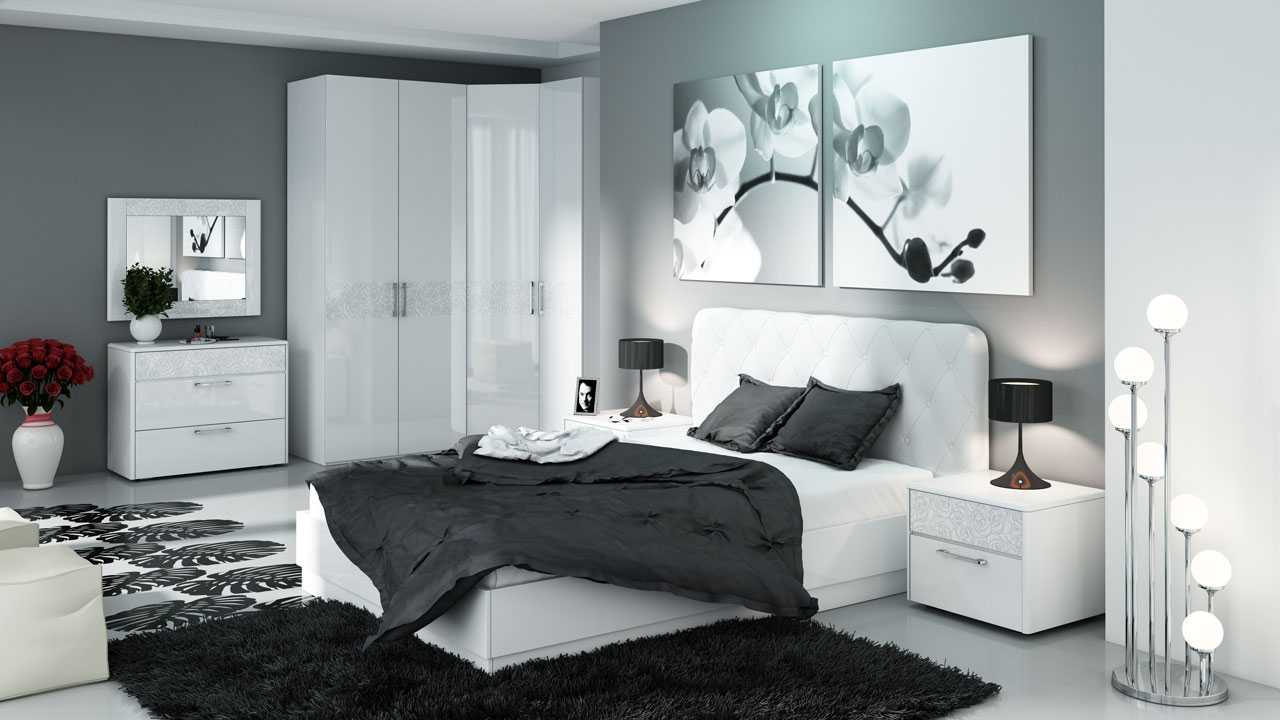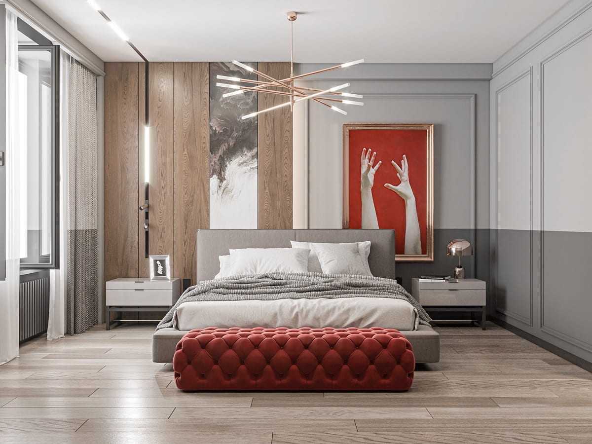 Отделка нейтральным серым цветом используется в стилях минимализм, хай-тек, лофт или модерн. Вместе с темной мебелью и четкими линиями они станут идеальным выбором спальни холостяка. Серебристые завитки на белом фоне дополнят интерьер женской комнаты. А серые обои с розовым, желтым или зеленым рисунком будут гармонично смотреться в семейной спальне.