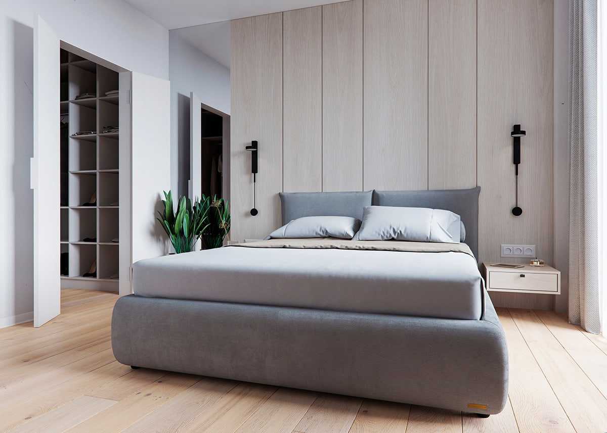 Выбирая кровать, остановитесь на модели без спинки. Изголовья нынче не в моде, на смену им пришла креативная отделка стены. В соответствии со скандинавским стилем, её можно оформить с помощью деревянных панелей. Выглядит стильно, в духе ещё одного модного сейчас, эко-направления.