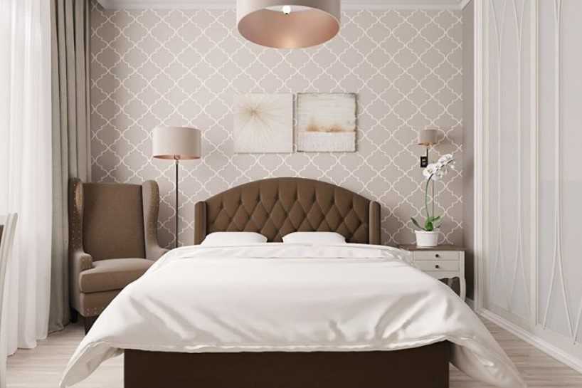 Обои для маленькой спальни лучше подбирать в светлых тонах для визуального увеличения пространства.
