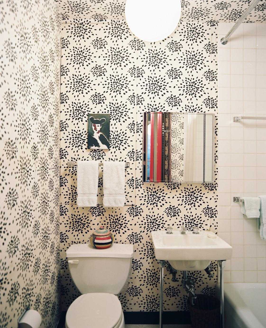 - Чтобы уберечь обои от брызг и загрязнений, дизайнеры рекомендуют использовать их лишь на 30-40% от всей площади комнаты.