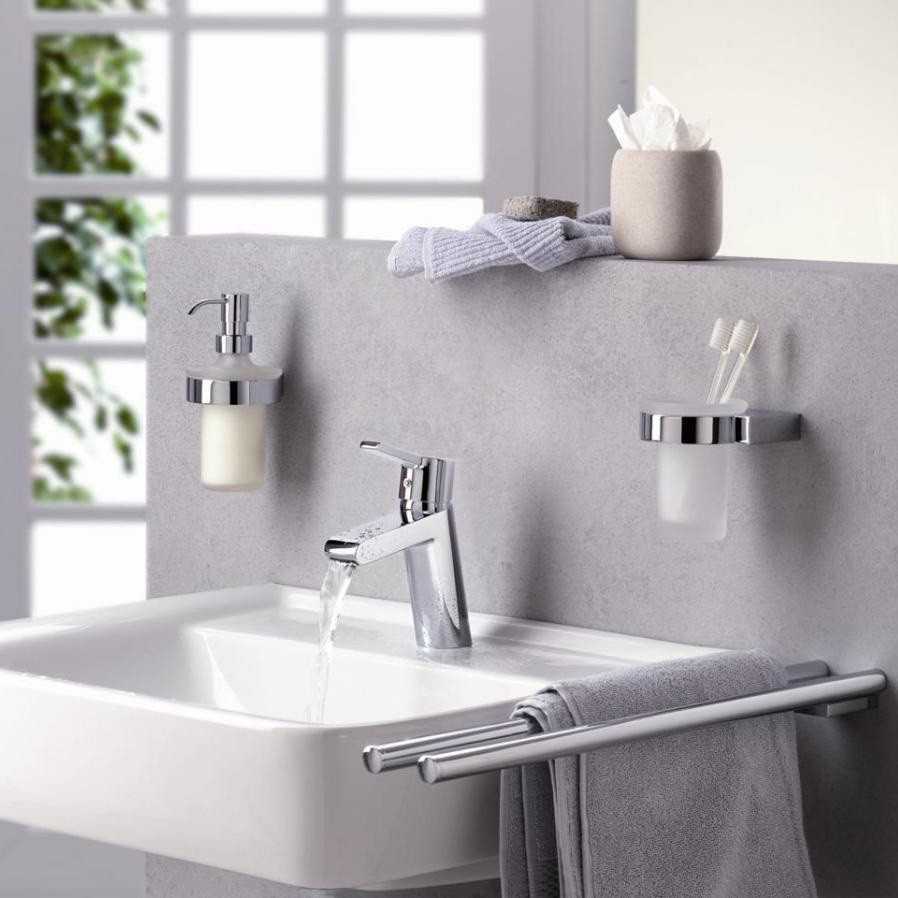 Не упускайте из виду такие детали, как держатель зубной щетки, дозатор мыла и другие аксессуары для ванной. Для них стоит продумать удобное и эстетическое место хранения. К примеру, цветные баночки на доске, миниатюрные корзинки и пестрые стаканчики.