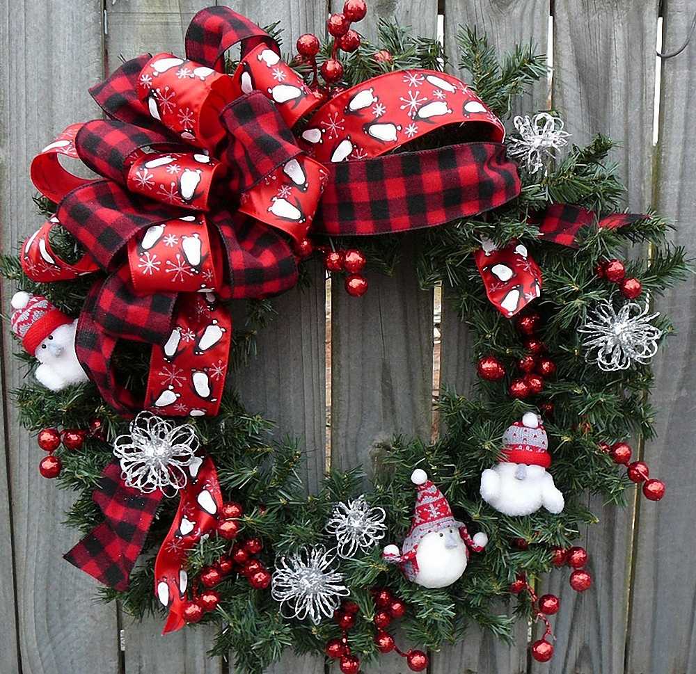 Для внешней стороны двери отличным украшением будет рождественский венок. Для детского сада он должен быть ярким и по-детски праздничным.