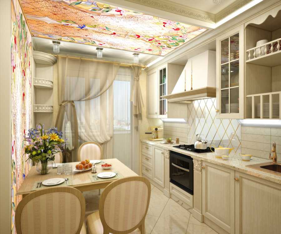 Для кухни можно использовать керамическую плитку или моющиеся обои светлых тонов.