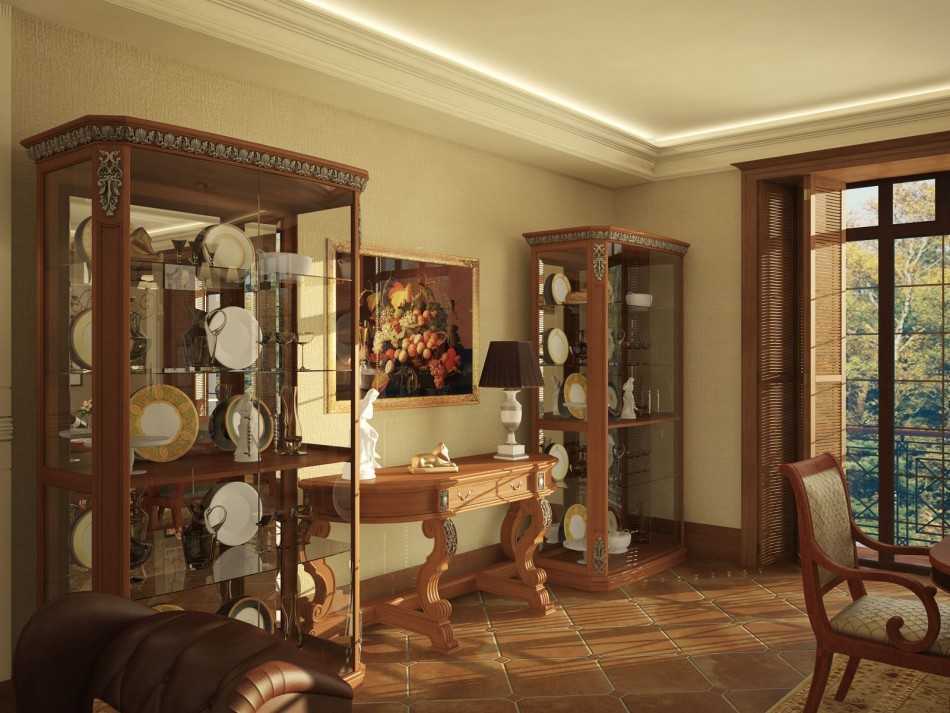 Благодаря названным характеристикам, классический интерьер выглядит спокойно и гармонично. Особенный шарм помещению придают дорогостоящие декорации: