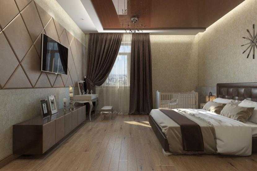 В классической спальне коричневого цвета может быть много – стены, мебель, покрывала и шторы. Но при этом выбирайте светлый розовый или лимонный фон, белый потолок и декор с розовыми и сиреневыми тонами. Блестящие и мерцающие дополнения с оригинальной подсветкой добавят красоты и благородства в современной стилистике.