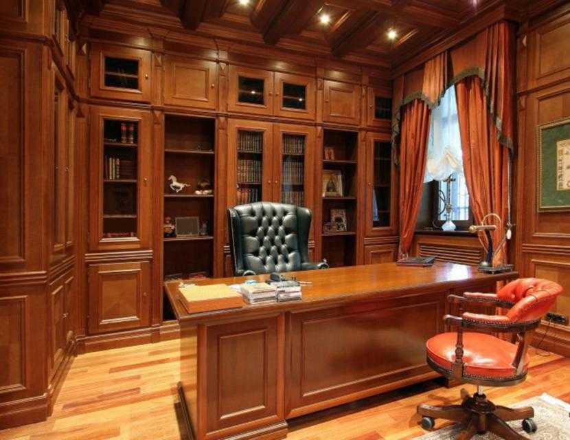 - темно-коричневые и рыжеватые тона в кабинете помогают сосредоточиться.